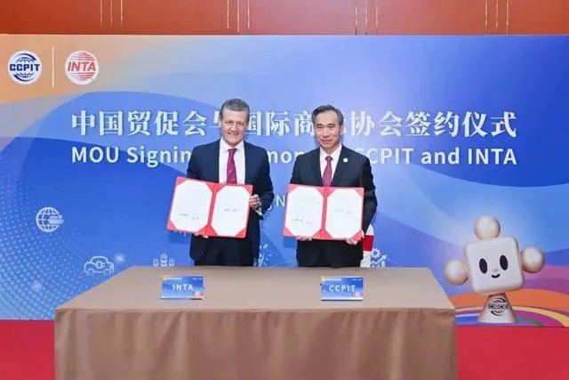 11月26日,在第二屆中國(guó)國(guó)際供應(yīng)鏈促進(jìn)博覽會(huì)期間,中國(guó)貿(mào)促會(huì)會(huì)長(zhǎng)任鴻斌和國(guó)際商標(biāo)協(xié)會(huì)首席執(zhí)行官埃蒂納·桑斯·阿塞多就深化兩機(jī)構(gòu)合作進(jìn)行了深入交流,并代表兩機(jī)構(gòu)簽署合作諒解備忘錄。