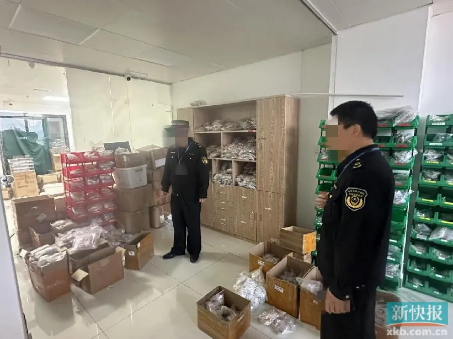 工作人員依法控制涉假工作室,發(fā)現(xiàn)80000余件假冒商品。